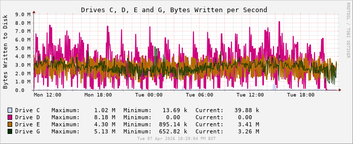 Atlas Storage Disks C:\ D:\ E:\ & G:\ - Data Written Per Second